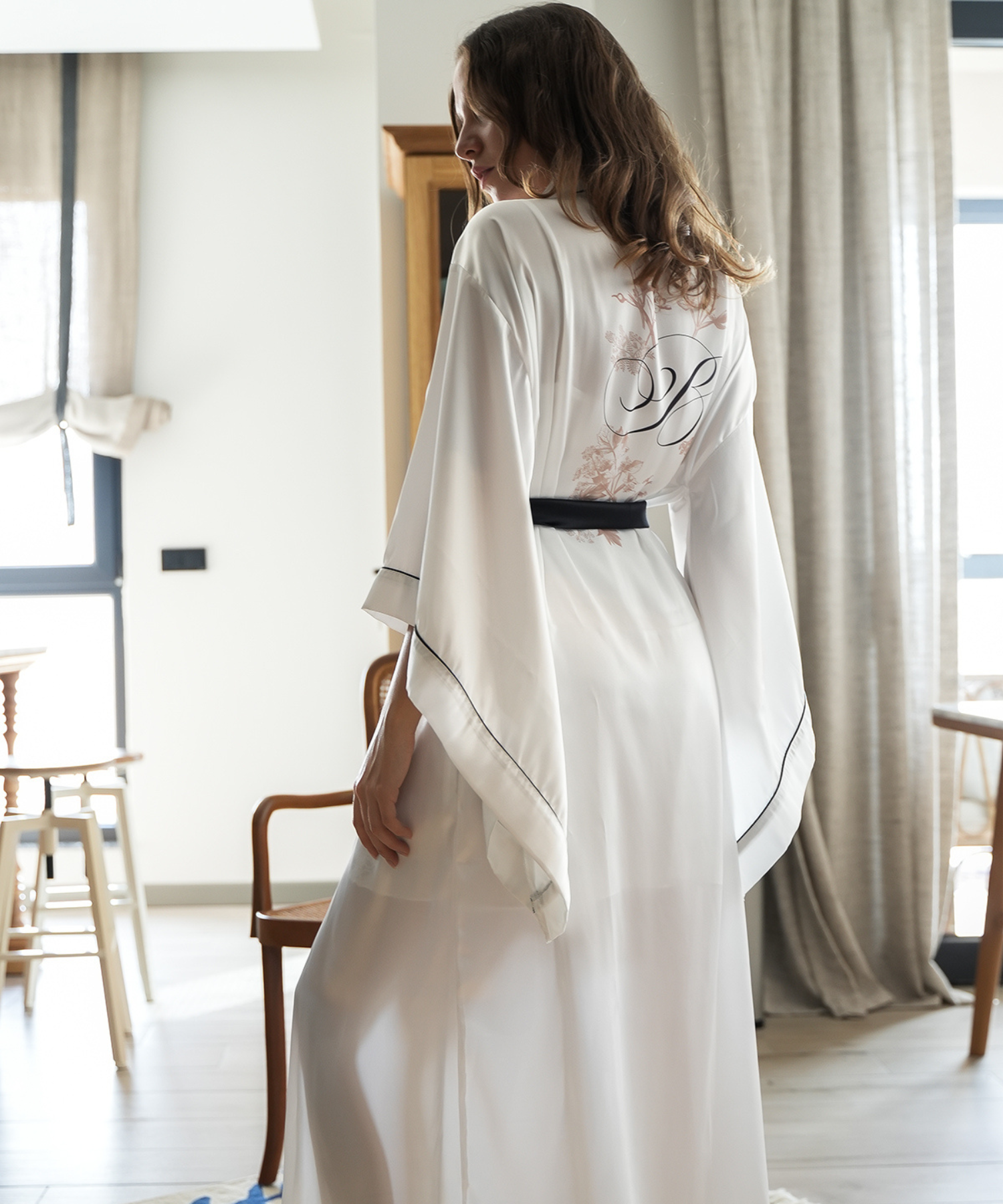 BEYAZ FRANSIZ DANTELLİ YARASA KOL SATEN KİMONO
