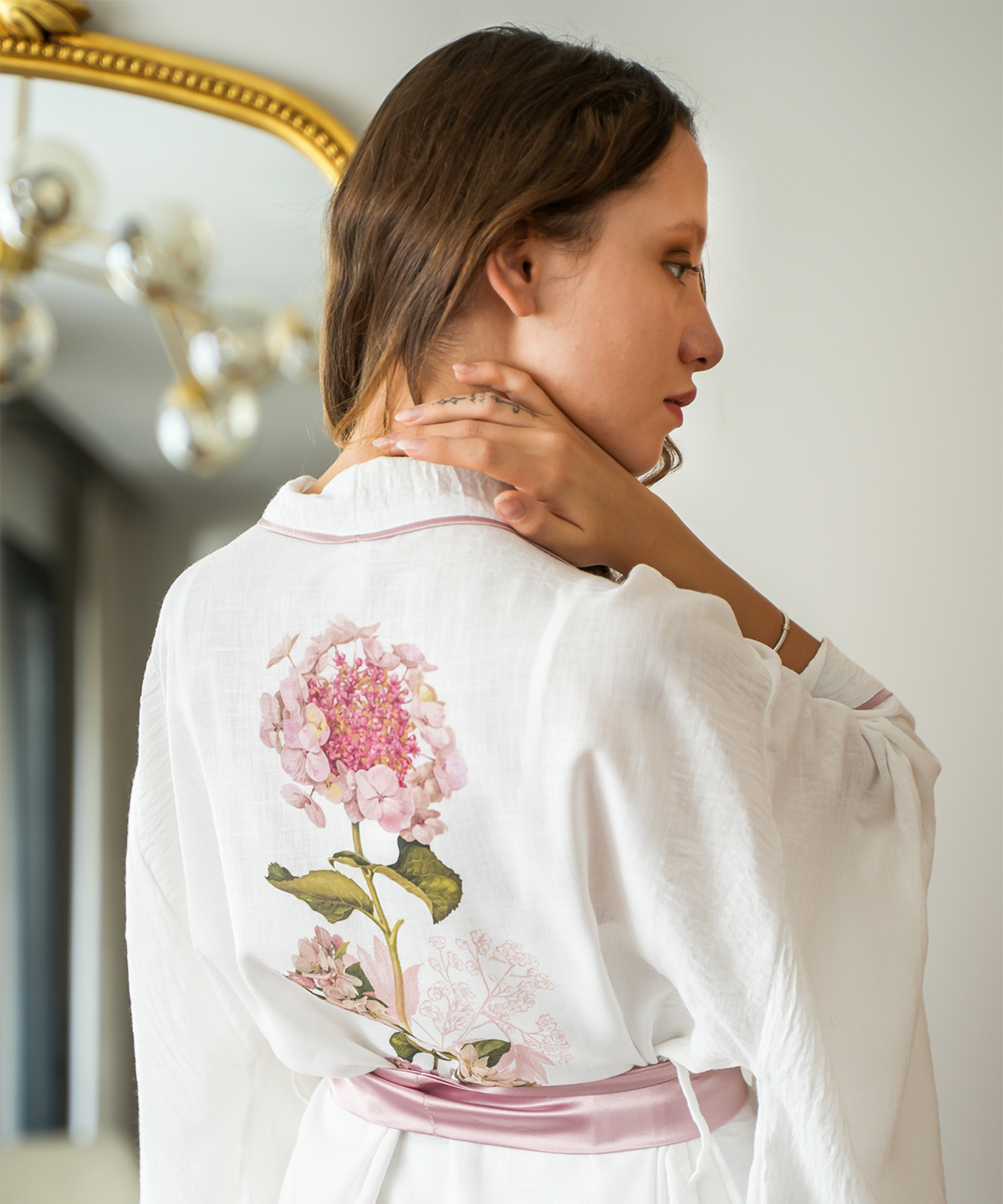 BEYAZ YARASA KOL GÜL KURUSU BİYELİ KİMONO