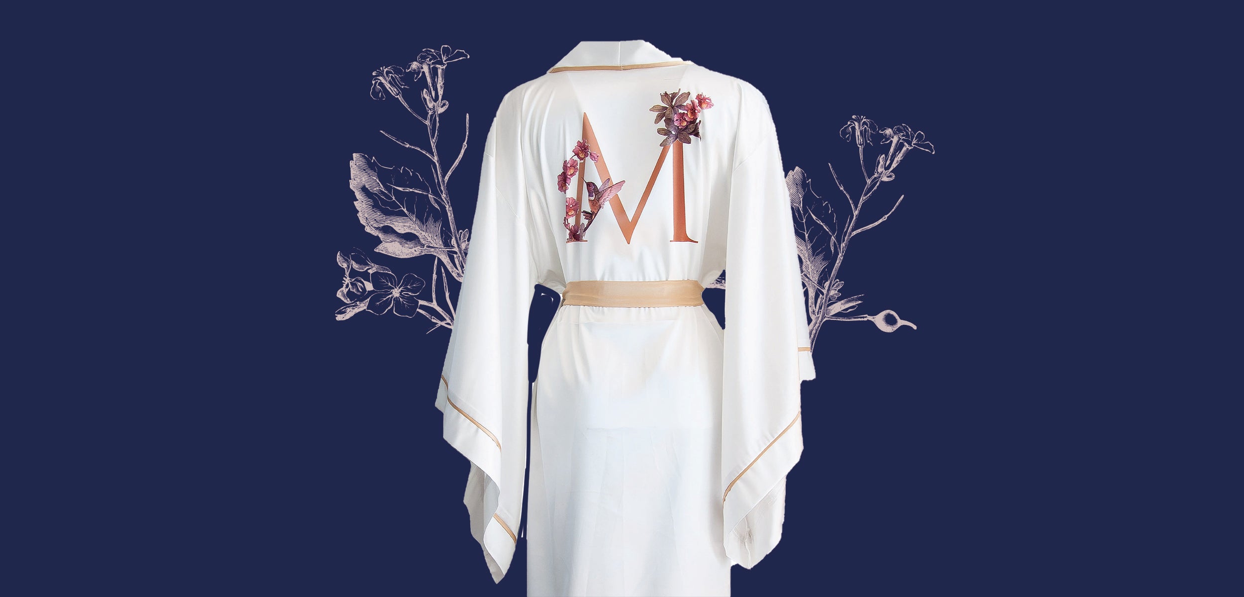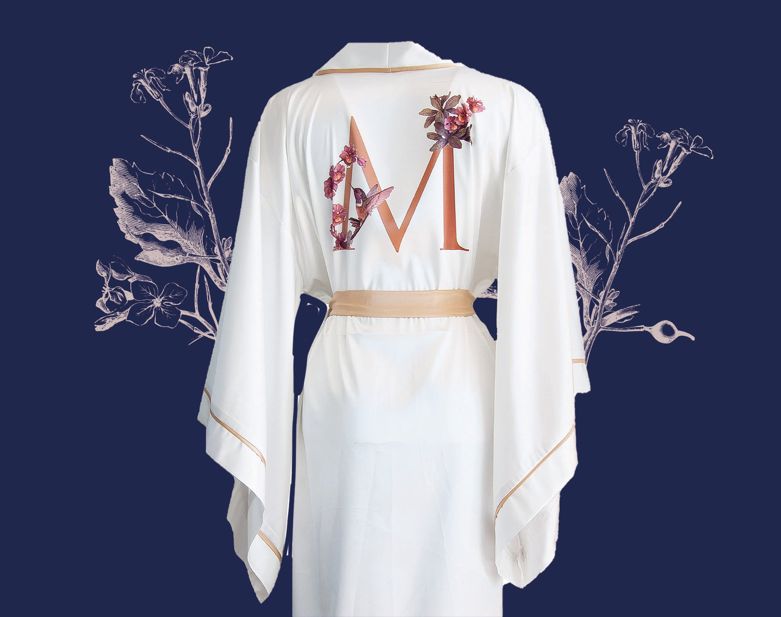 BEYAZ YARASA KOL PUDRA BİYELİ MONOGRAM KİMONO