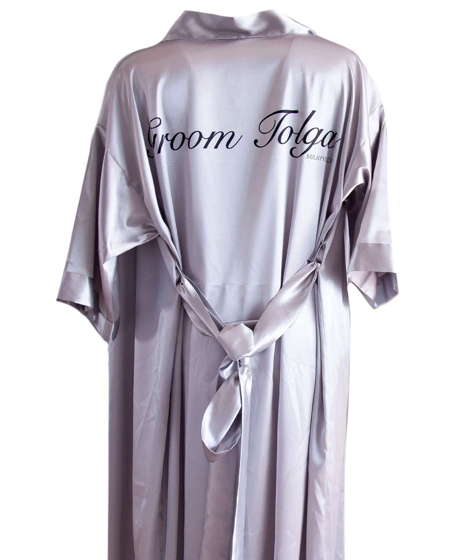 BUZ MAVİ SATEN ŞAL YAKA KİMONO-PANTOLON TAKIM