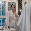 Mavinin dingin tonu, Fransız dantelin ince işçiliği ve satenin akışkan dokusu tek bir silüette buluşuyor! 🩵