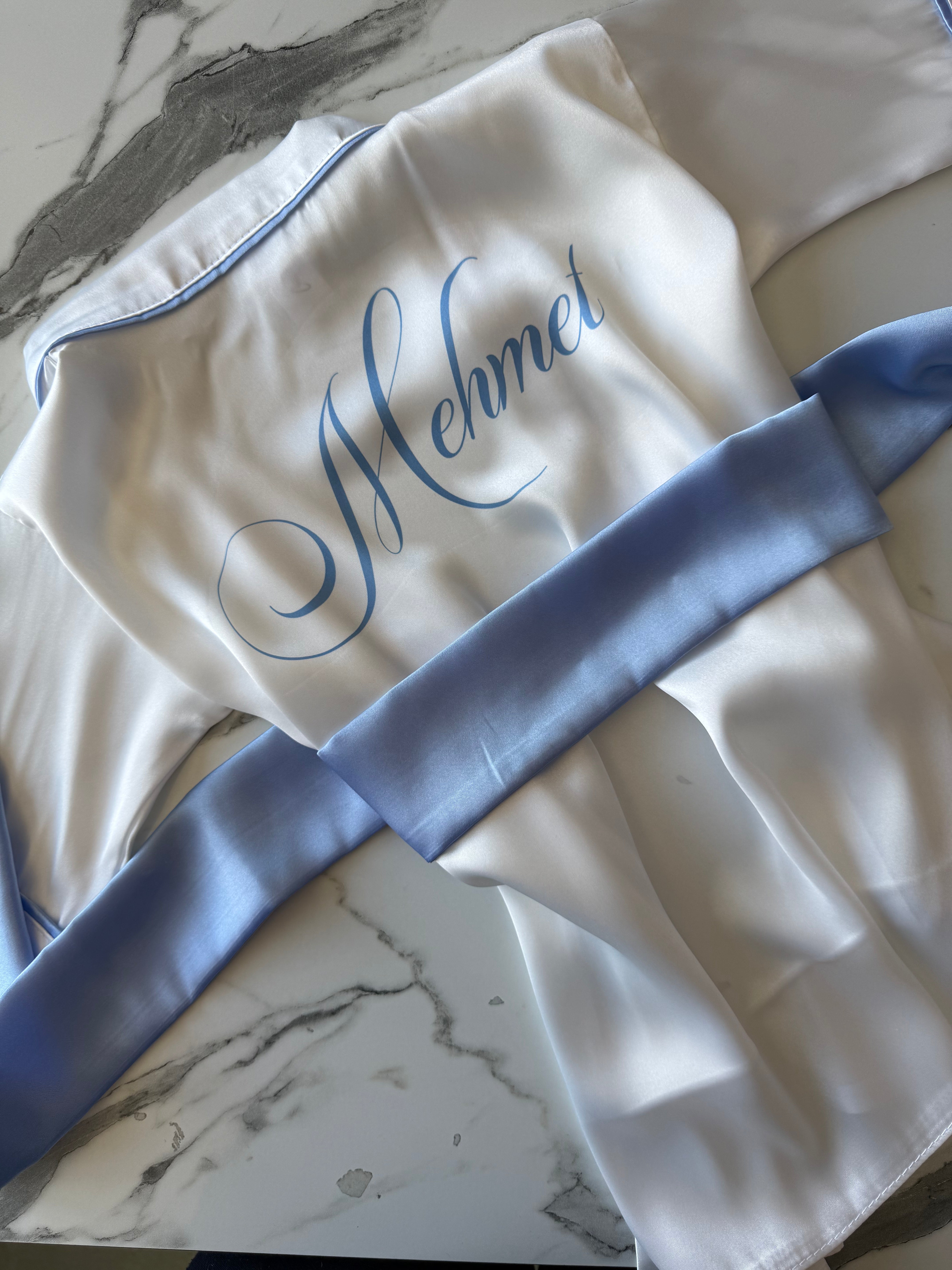 BEYAZ SATEN BUZ A-MAVİ BİYELİ ÇOCUK KİMONOSU