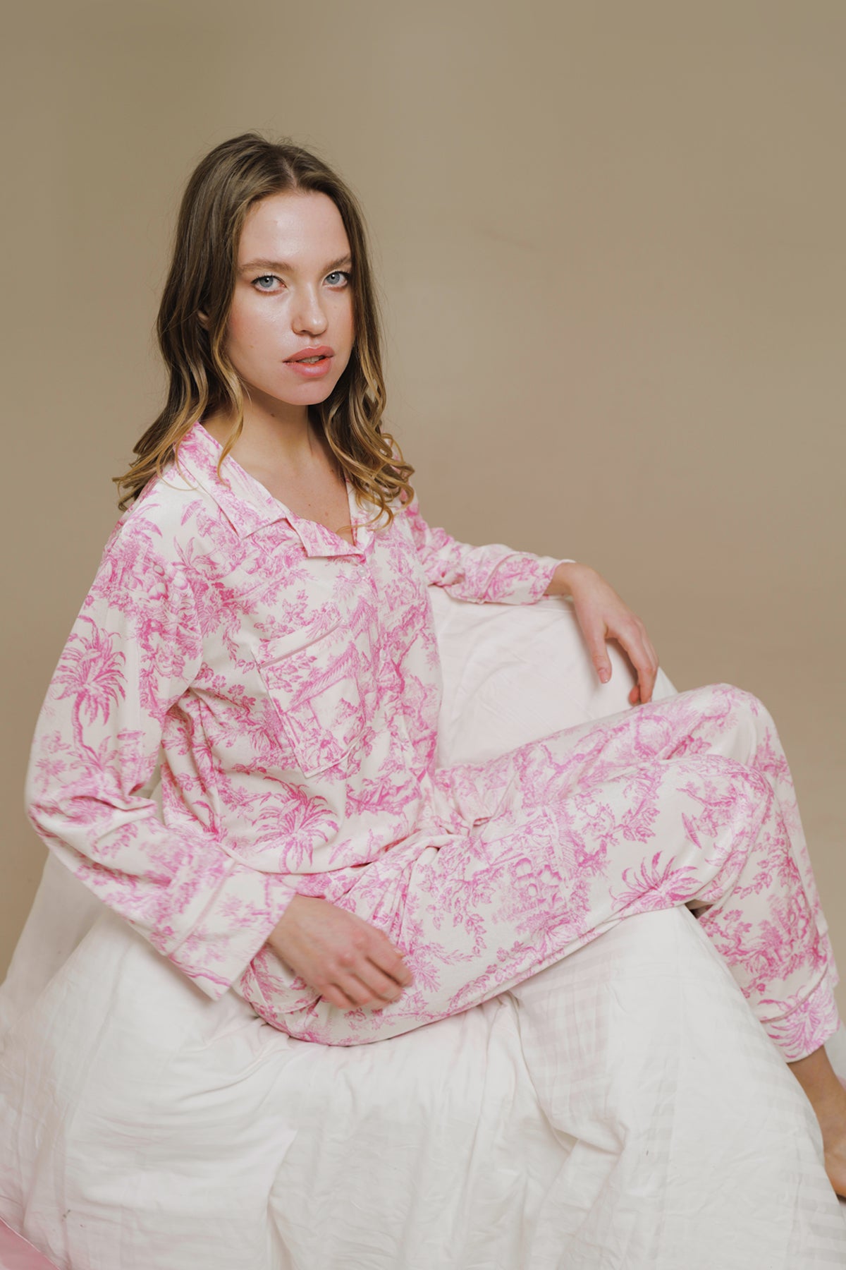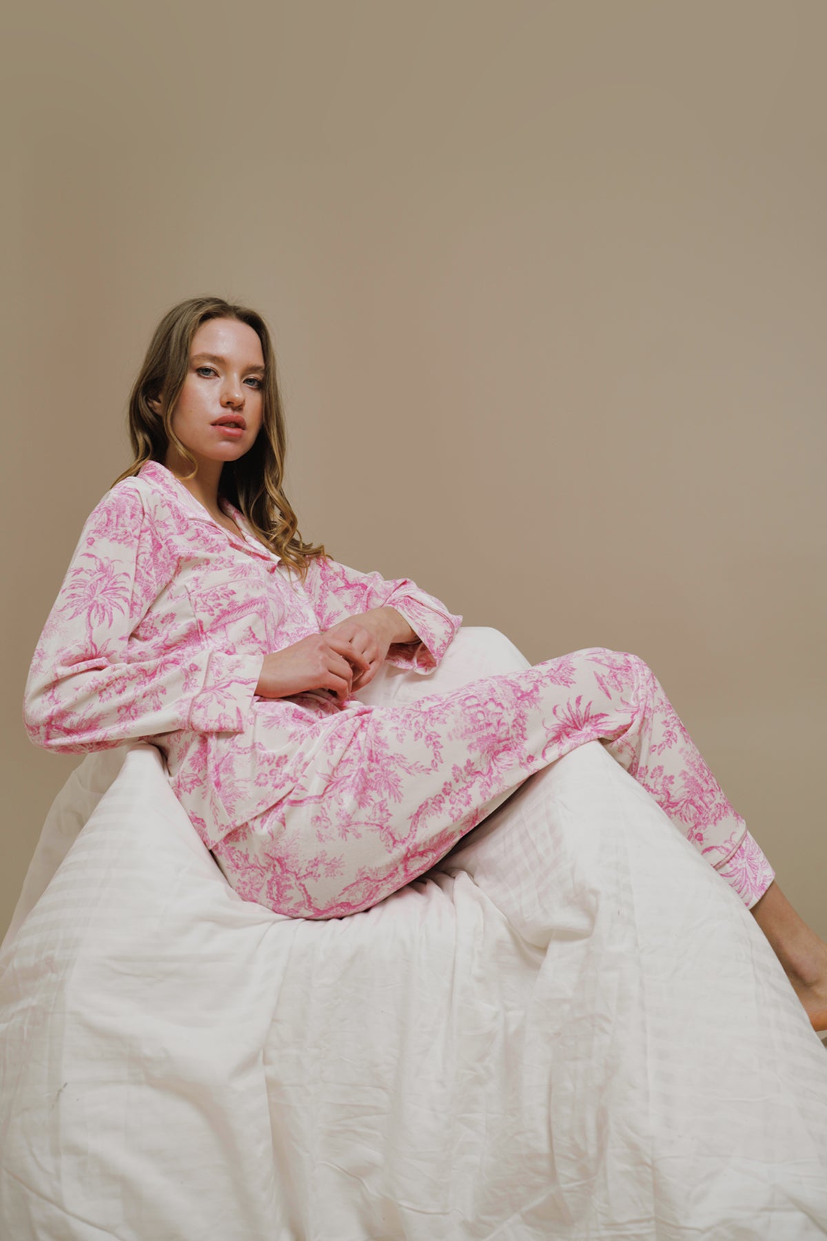 PEMBE KADİFE GÖMLEKLİ PİJAMA TAKIMI